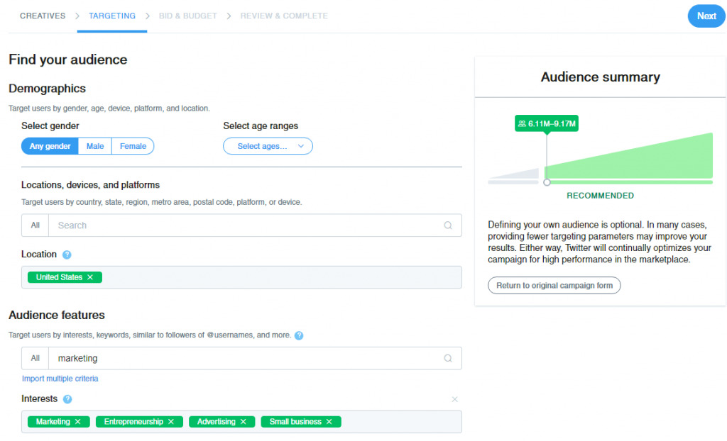 FacebookやLinkedIn、Twitterの広告プランナーを使えば、自分が興味を持っている市場セグメントの数字を把握することができます。