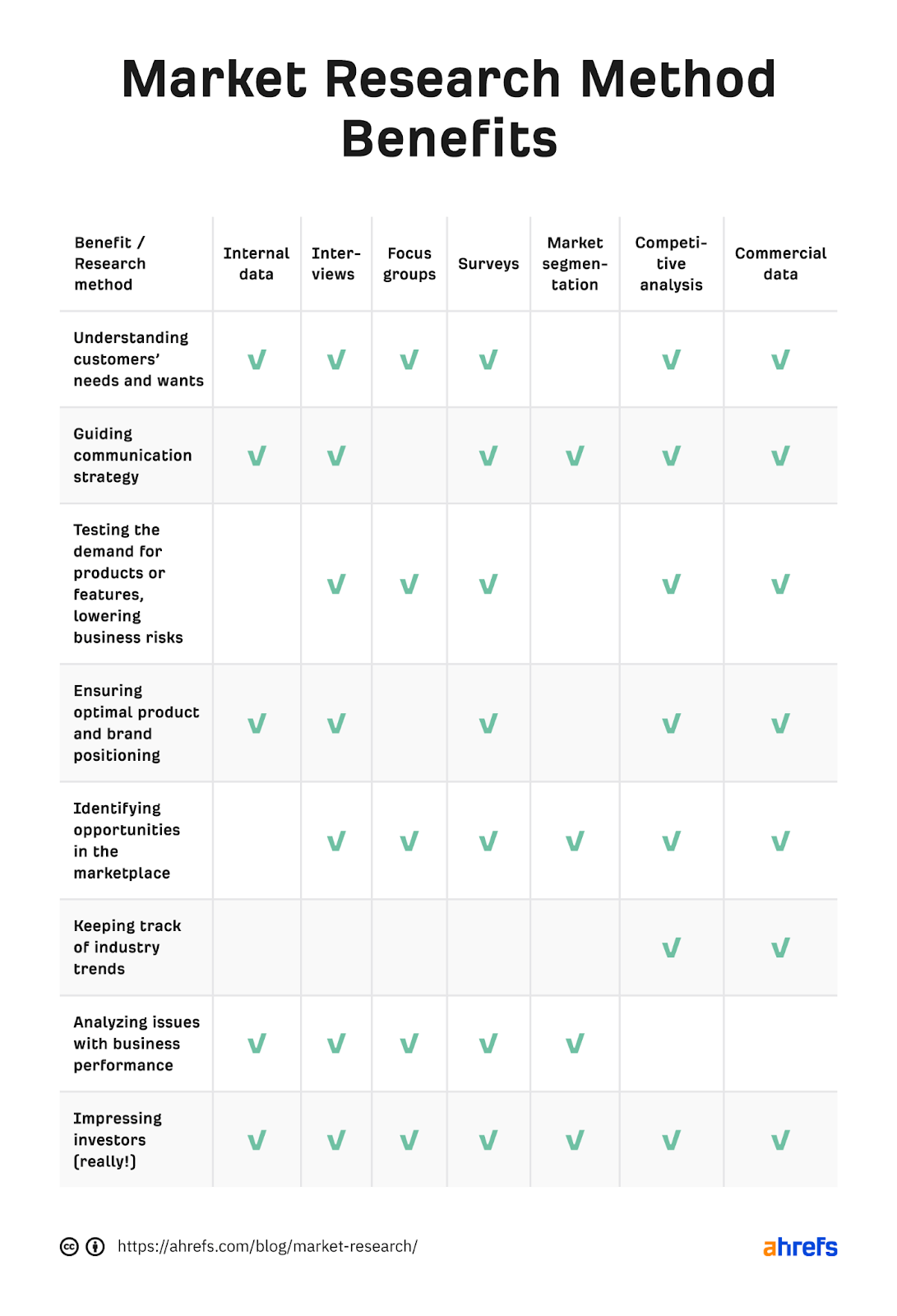 Ahrefsを例にとってみましょう。私たちは、誰でも使えるアジャイル・市場調査のハックにこだわっています。記事の後半でご紹介しますが、ソーシャルメディアでの投票、クラウドソーシング、社内での競合分析、あるいは競合他社の価格設定の追跡など、シンプル(だけど効果的!)な方法を使っています。